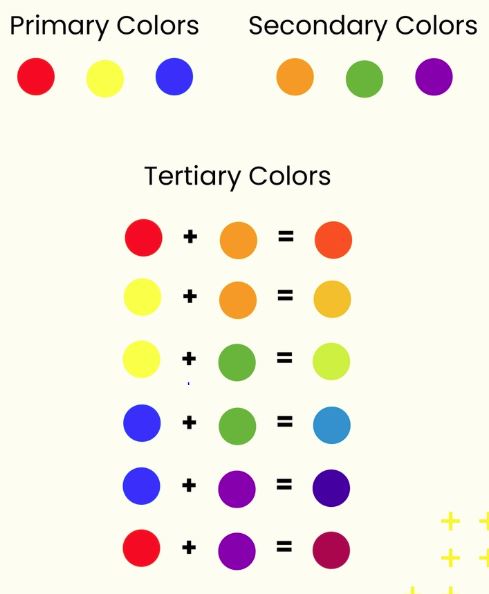 • Tertiary Colors: Yellow-orange, red-orange, red-purple, blue-purple, blue-green, yellow-green – combinations of primary + secondary.